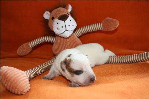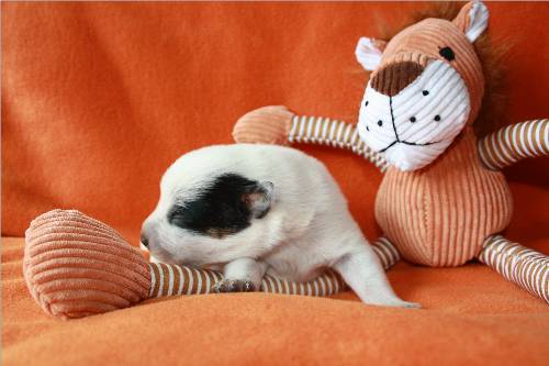 Hündin rot, 2 Kopfflecken / female red, 2 spots